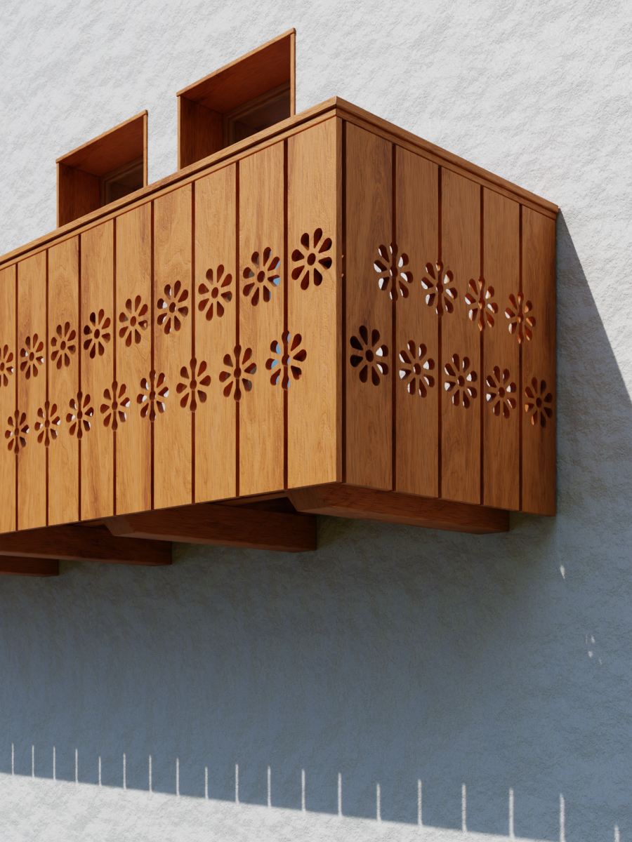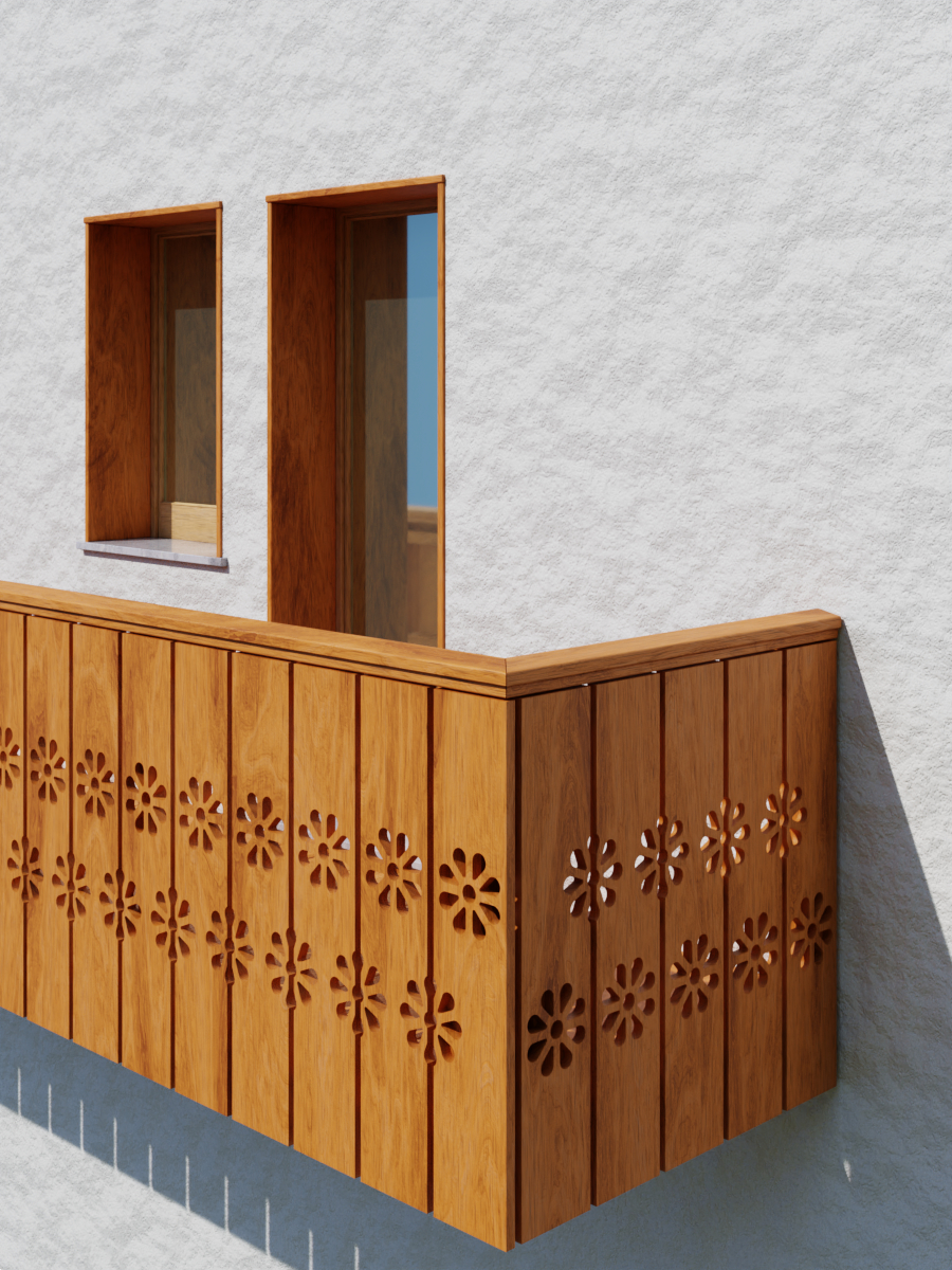 I poggioli in legno costituiscono uno degli elementi più riconoscibili del paesaggio architettonico delle dolomiti. Che si tratti di una struttura interamente lignea o di una soletta in calcestruzzo, ciò che distingue ogni poggiolo è il suo parapetto, testimonianza della ricerca estetica che per secoli gli abitanti della montagna hanno sviluppato. Ed è proprio dal patrimonio storico dell’architettura vernacolare dolomitica che Darwin Garden cerca la propria ispirazione, al fine di conservare e sviluppare in chiave contemporanea i segni distintivi del paesaggio culturale delle nostre valli.